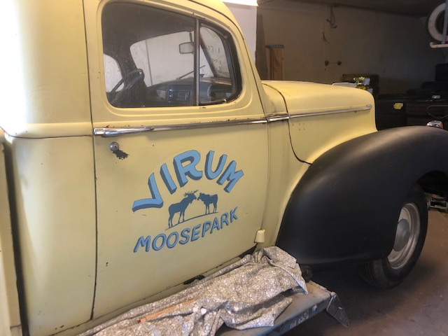 Retrologga framtagen och målad på hederligt vis med pensel och oljefärg. Ytan har sedan patinerats med slippapper.